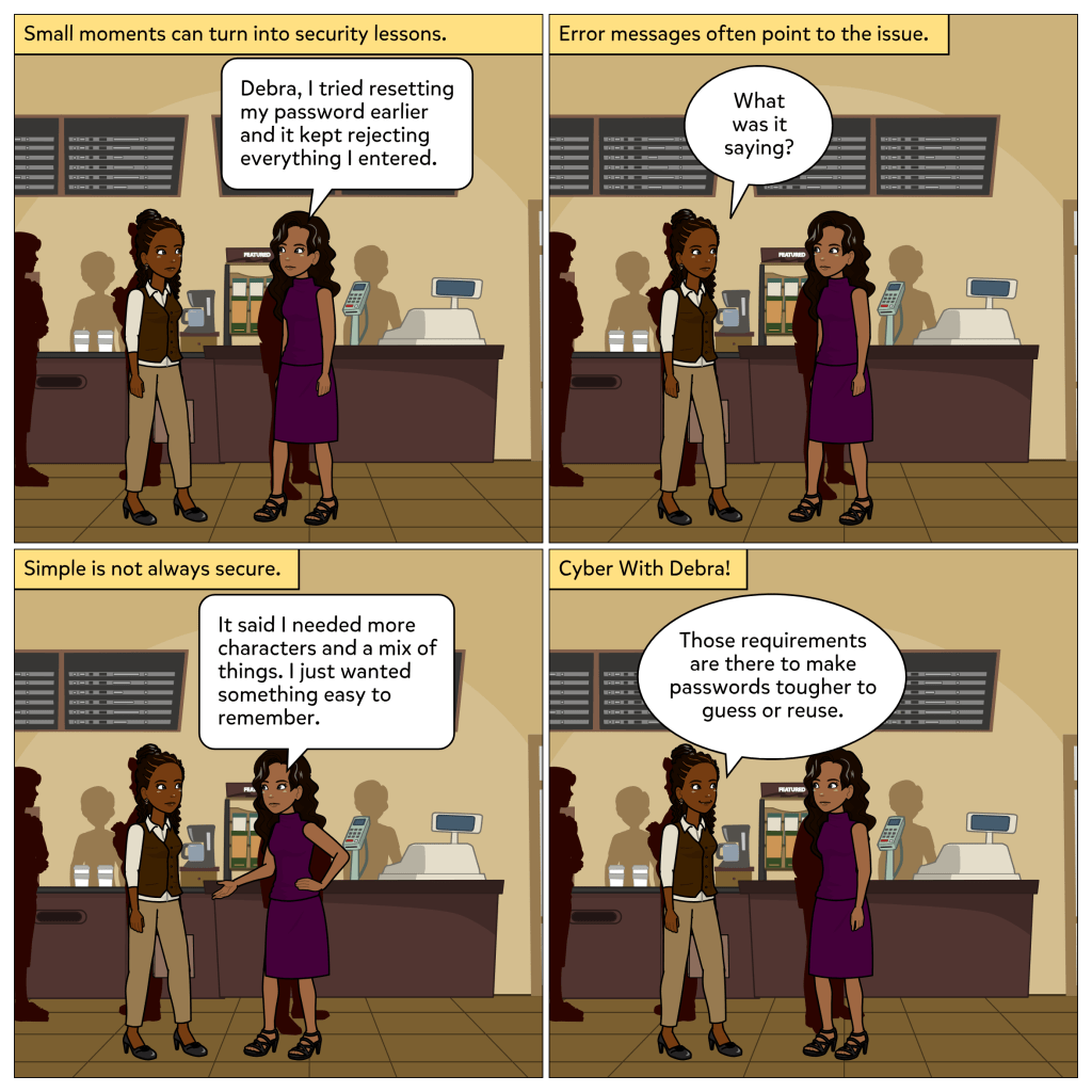 In this week’s comic, Michelle runs into that exact situation. While trying to reset her password, everything she enters keeps getting rejected. What feels like a simple task quickly turns into frustration.
